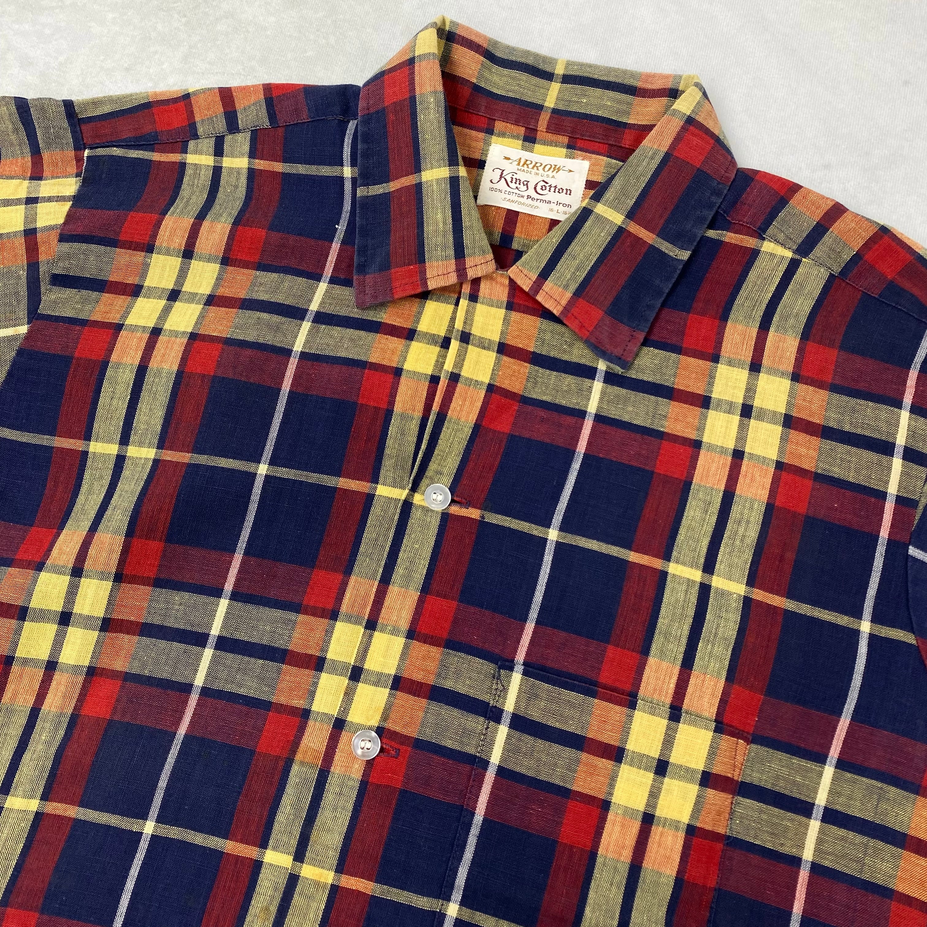 60's ARROW king Cotton チェック 開襟シャツ