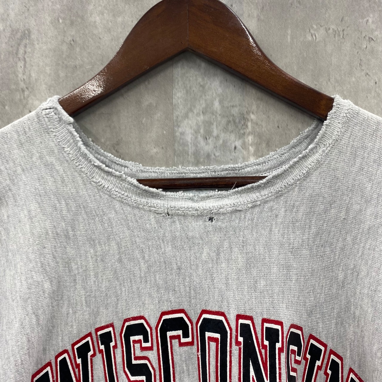 90's Champion WISCONSIN リバースウィーブスウェット 刺繡タグ
