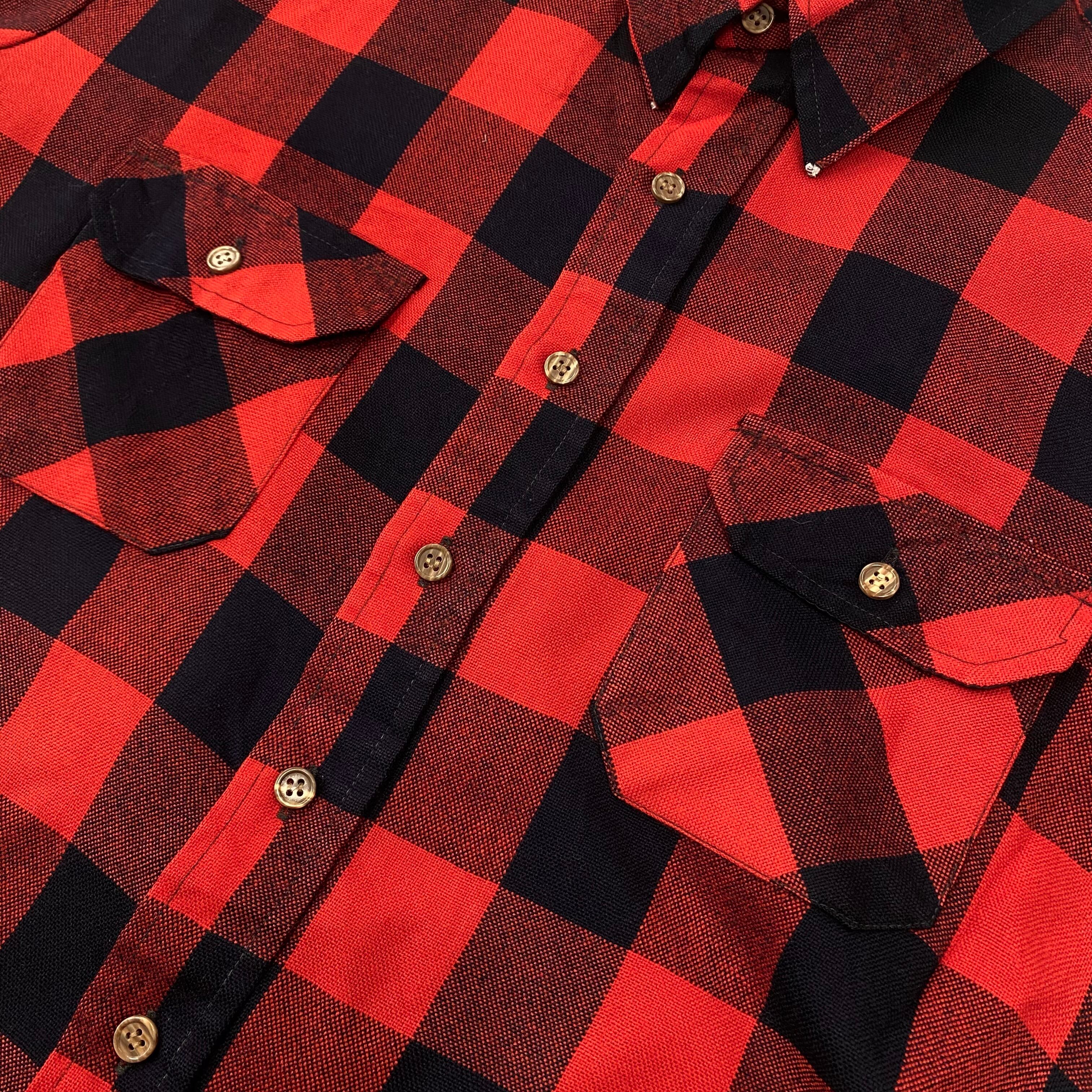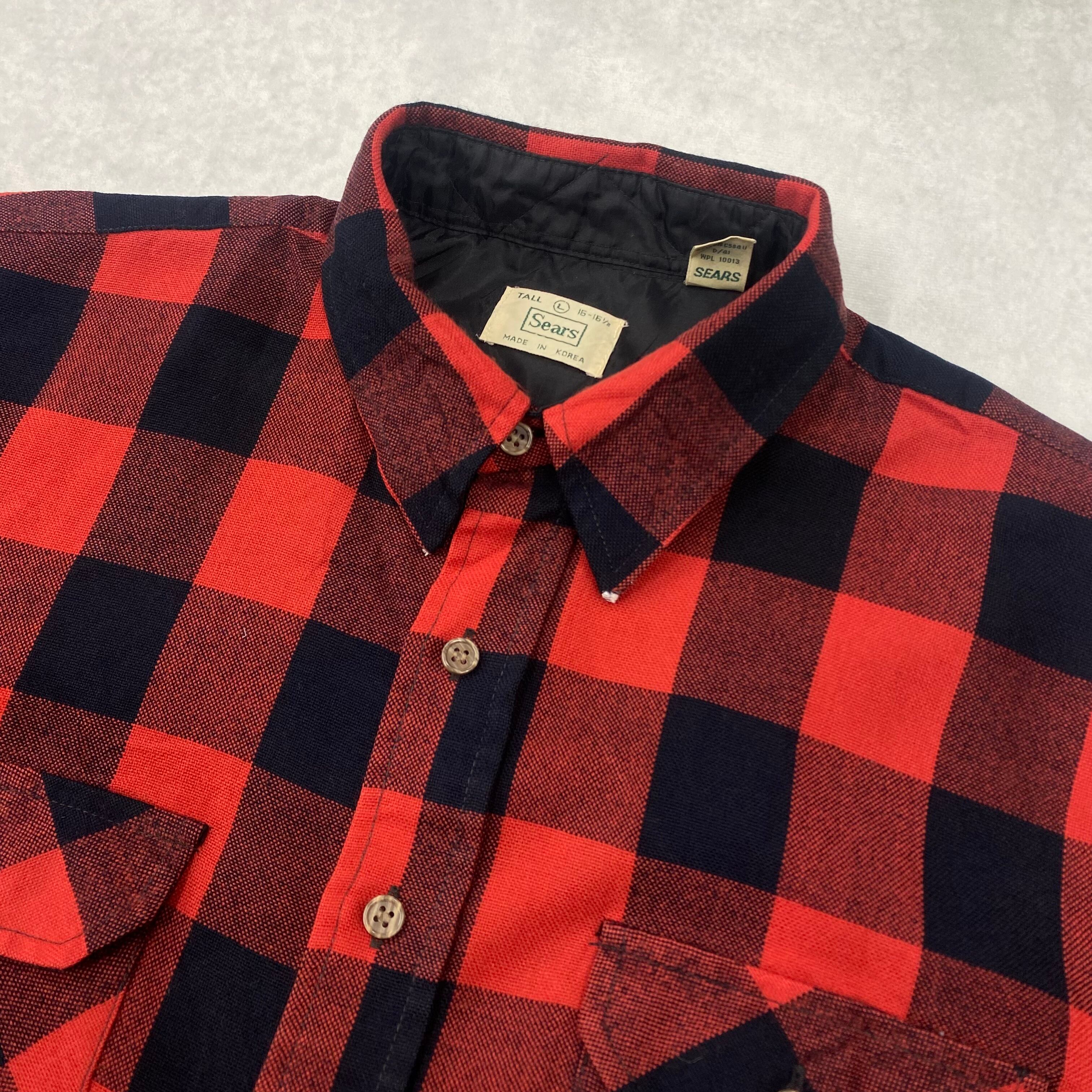 90's SEARS ブロックシャツ ストアブランド アクリル ナイロンリネン